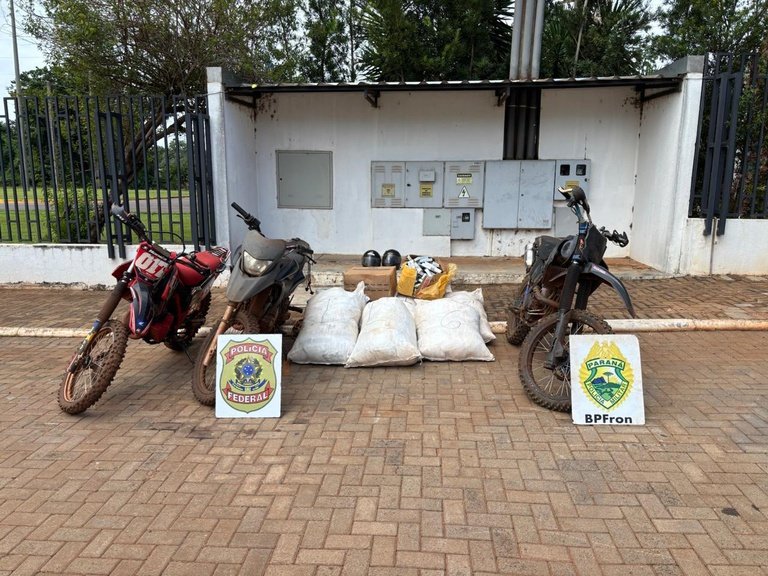 Nesta sexta-feira (17/4), durante ação integrada no âmbito da Operação Protetor, a Polícia Federal e os policiais militares do BPFron/PM/PR apreendeu três motocicletas em Guaíra/PR. Os veículos estavam carregados com produtos de origem estrangeira.