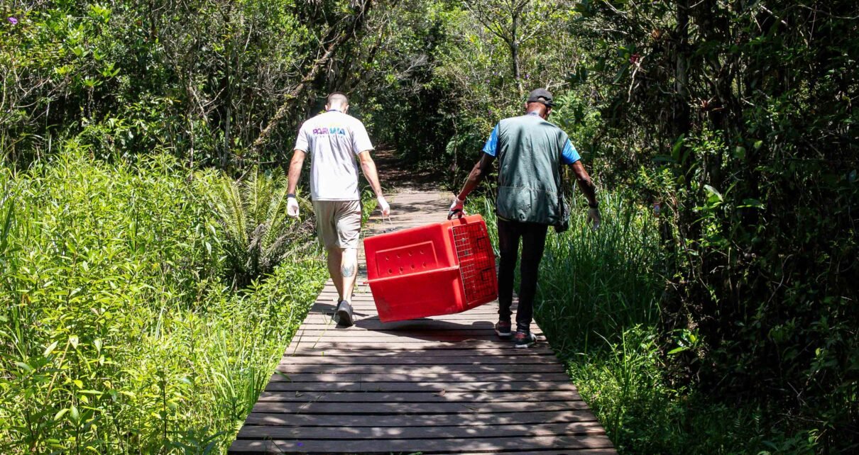 O coordenador do Setor de Fauna do Escritório Regional do Instituto Água e Terra (IAT) do Litoral, Rafael Galvão da Silva, destacou que o animal silvestre passou por uma série de avaliações antes de ser liberado para soltura. “Nós tivemos um acionamento para resgate de um tamanduá-mirim, em uma residência próxima ao Parque Estadual do Rio da Onça. Ela acabou saindo da área de floresta e entrando nos fundos de uma residência. Fizemos uma avaliação técnica do animal e os procedimentos legais para poder realizar essa soltura”, explicou.